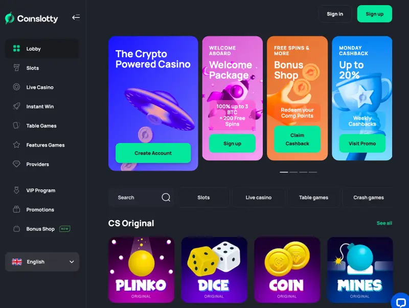 Signing up at Coinslotty BTC Casino is easy and fast. This, of course, makes sense since all payments are made with cryptocurrencies.