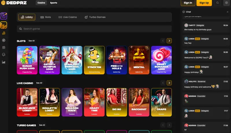 DEDPRZ Casino boasts an impressive game library, divided into two major sections.