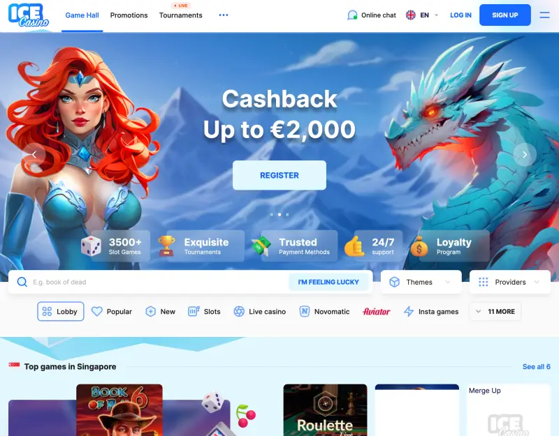 The first thing that can attract your attention at Ice is the site. Ice Casino’s cutting-edge design looks stylish and performs its functions without distracting users from playing. The website’s interface is divided into five sections, starting with a promotional banner that showcases current casino promotions. The following section is a large virtual lobby that features images of new gaming slots, followed by a section for casino tournaments.