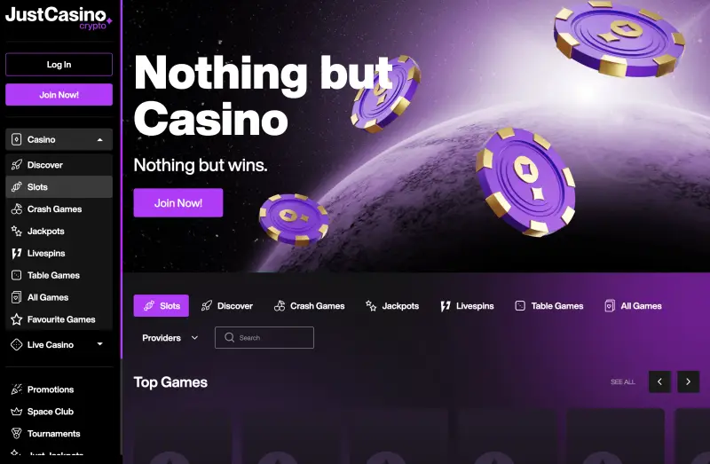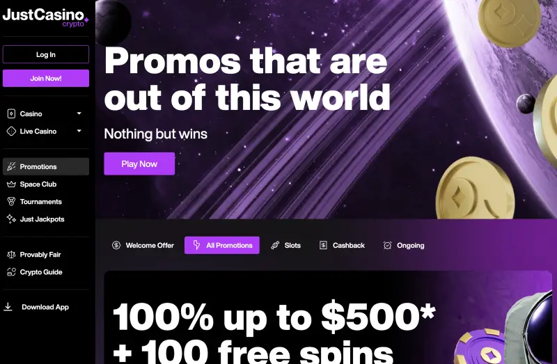 Those looking to complement the excitement of online casino games with sports betting are not pleased with Justcasino.io. This online entertainment site only has offers for online casino players, such as slots and crash games, among other options.