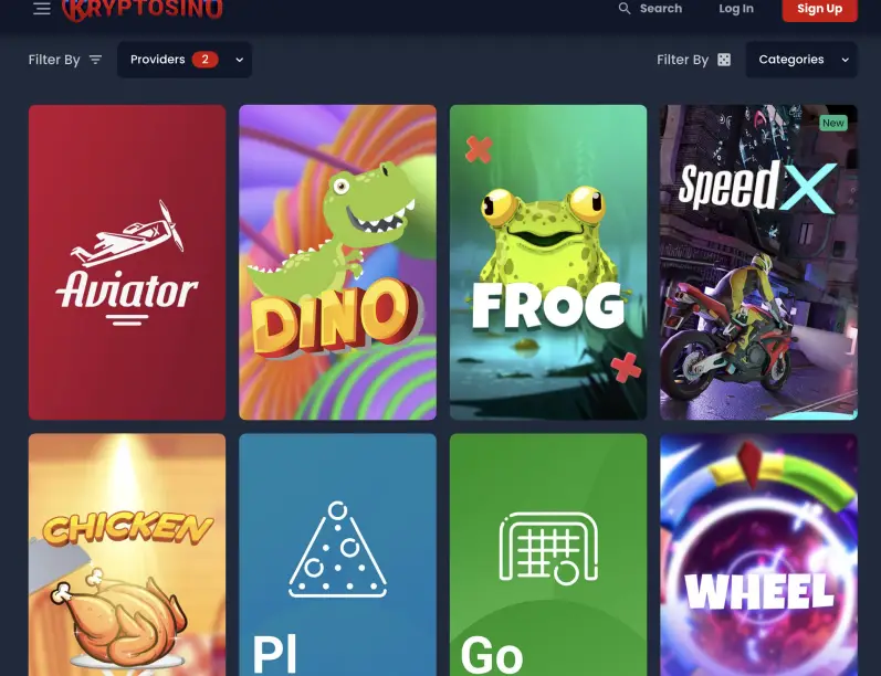 The first thing you’ll notice about Kryptosino is the modern and sleek design of the website. The casino is easy to navigate and everything is just a few clicks away. When you scroll down the homepage, you’ll see all the different game categories that Kryptosino offers.