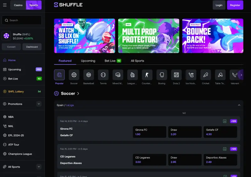 Other bonuses and rewards you can receive include the SHL Lottery, NHL loss, treasure hunt, and bounce back. Shuffle also has a VIP program where players can access VIP features and treatment.