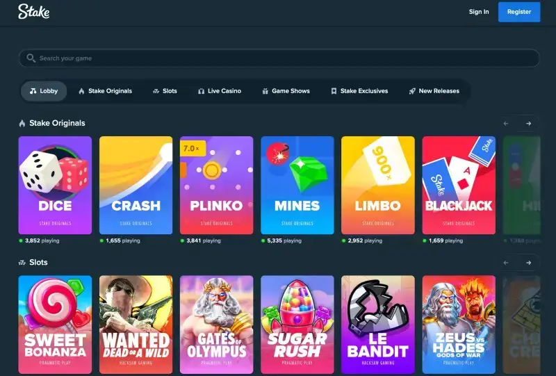 For most users, the Games and slots are the reasons to visit Stake, and they wonโt be disappointed as the site counts with: