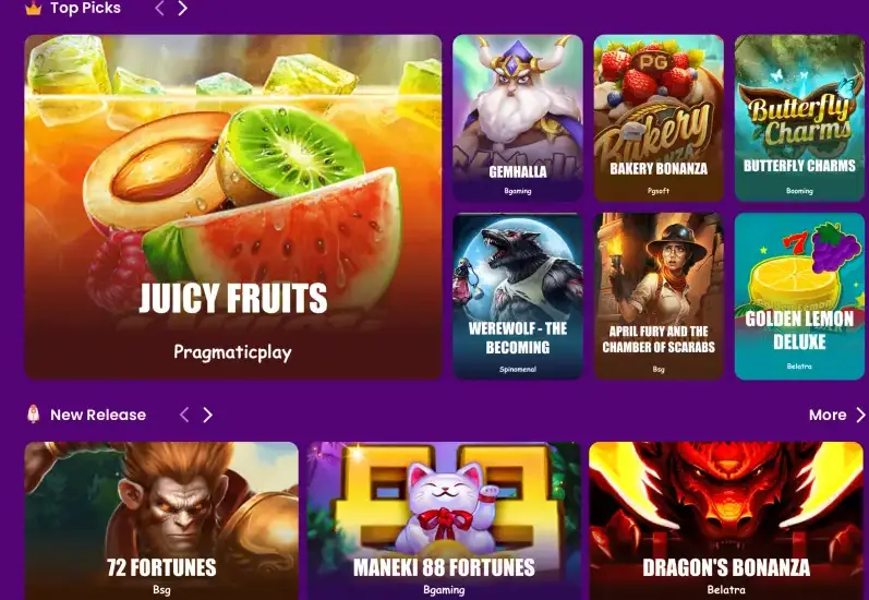 Easily navigate through the games using filters for favourites, new releases, and drop & win titles, as well as by game provider.